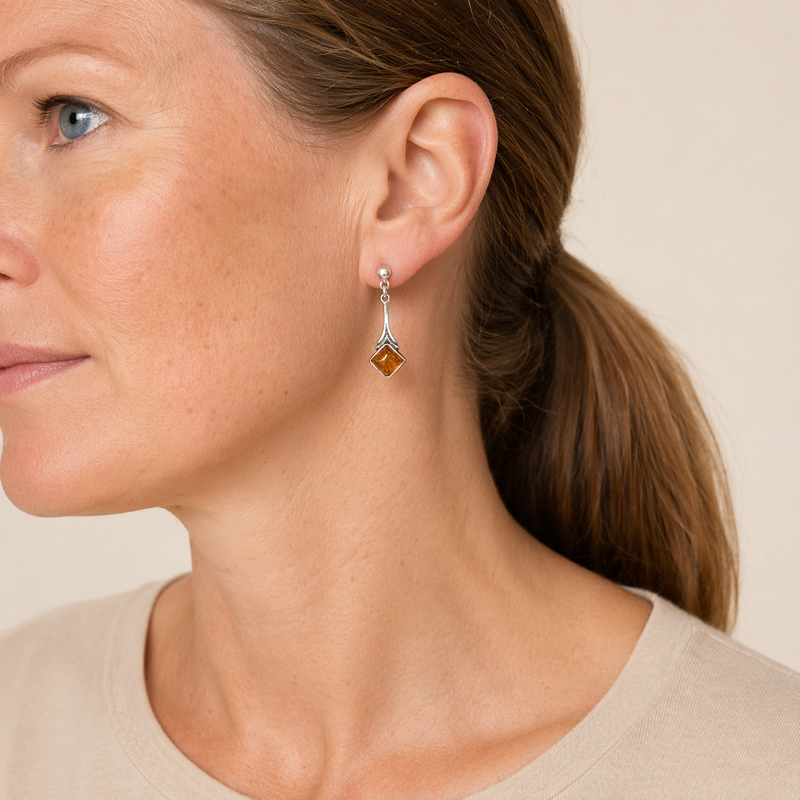 Long Earring with Amber.