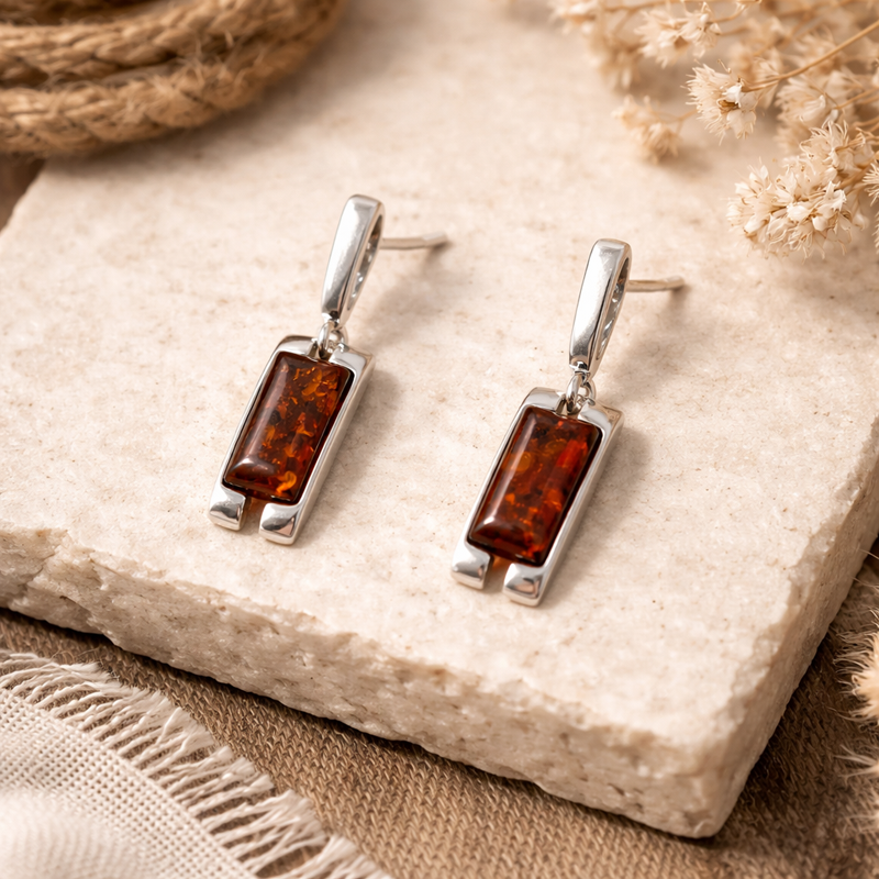 Silver Earring with Amber.